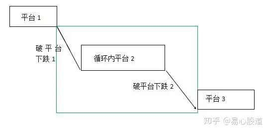 这里讲的平台就是箱体。平台2内一般会有涨幅,大多是到平台1的底部区域附近。也有时没有涨幅,只是单纯的横盘整理。而这个平台的特点就是在一定时间范围内,破平台下跌1的最低点区域是不会被跌破的,但最终是肯定被跌破的。