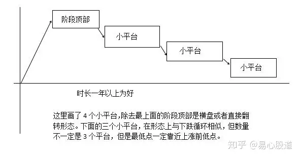 需要注意的是,这里多了一个阶段顶要素。这个阶段顶就是熊市及熊市走完之后的一段时间内,当股价上涨到一定幅度时,股价停止上涨,或者先横后跌,或者直接反转下跌。也就是一段涨幅的顶部位置。因为相对于牛熊大循环来说,这个位置一定是暂时的高度,所以称之为阶段顶部。
