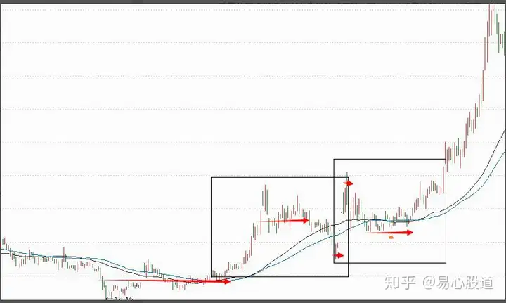 相对于下跌平台,上涨循环的形态明显要复杂一些。而且这里面的平台后面,大多不会再出现破平台下跌的情况。这个循环的意义是不断收集低位筹码,降低持仓成本,但是为了已经持有的筹码成本,所以大多不会出现破平台下跌。