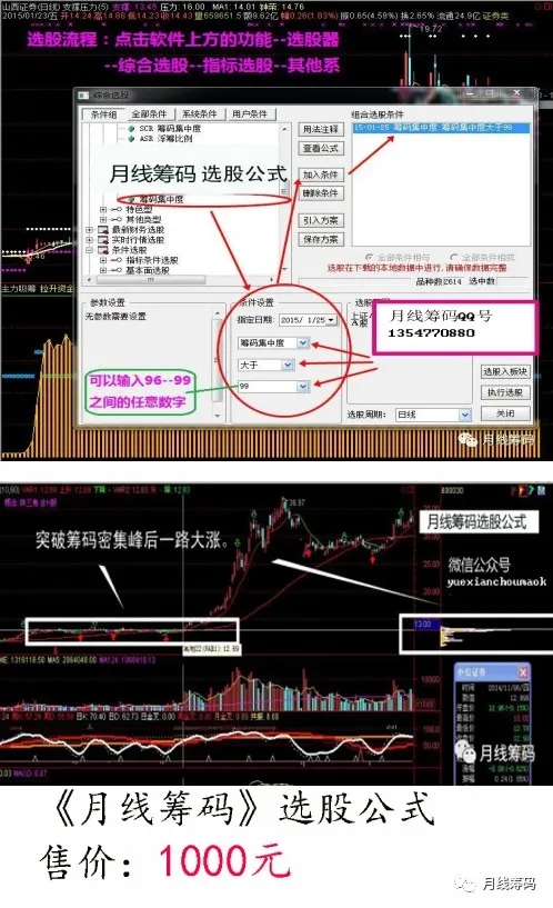筹码密集峰选股公式(1000元)